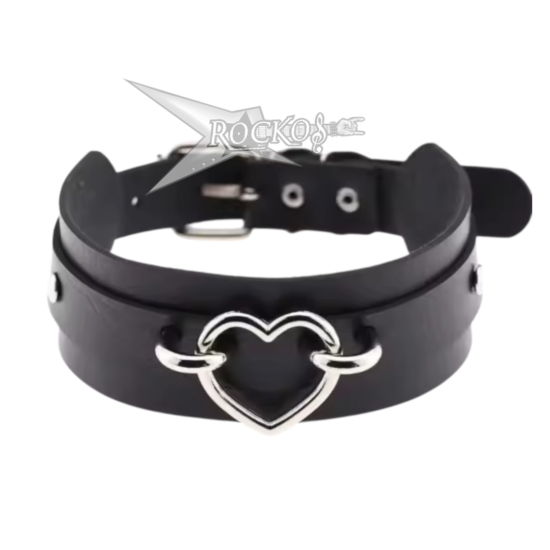 Gothic Leather Choker With Heart Ring,